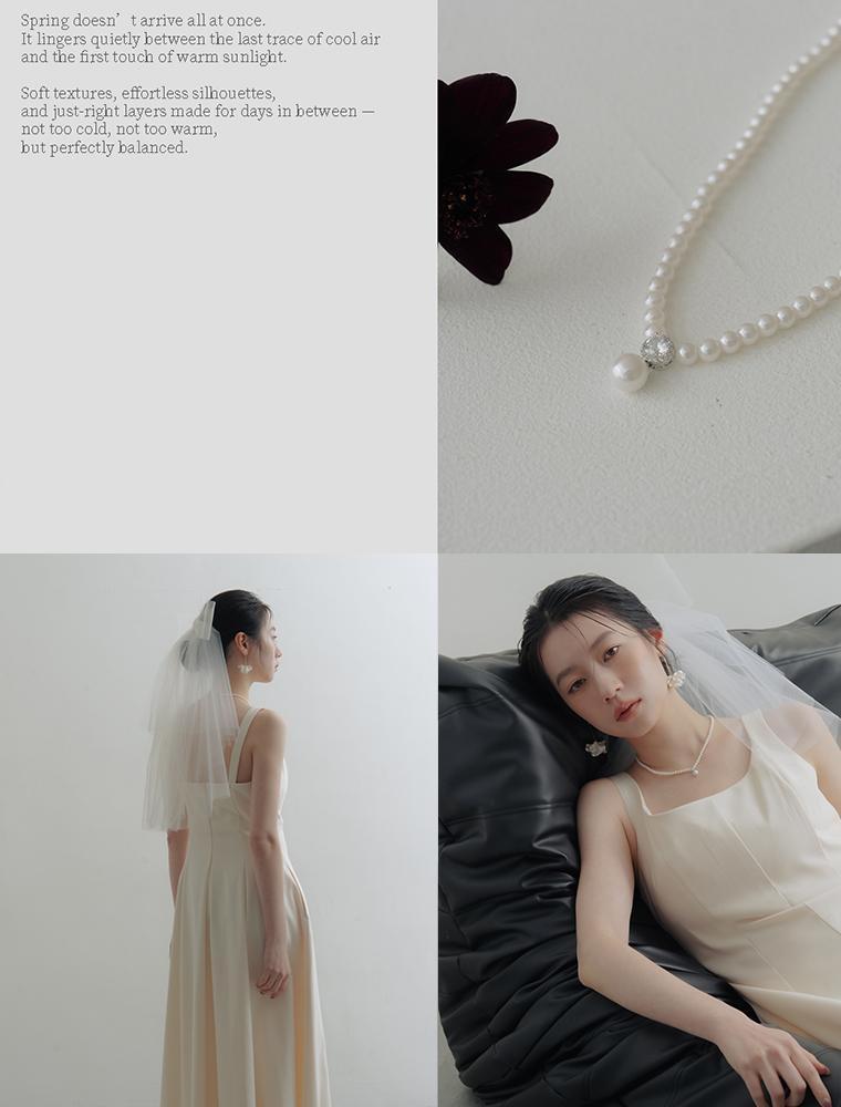 【SALE】腰部抽繩雪紡長洋裝(米白)